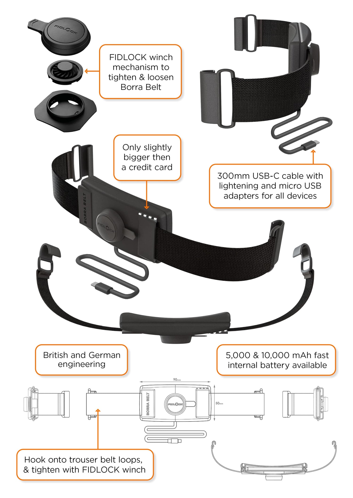 Perfect for festivals, live music, large sports events and much more, Borra Belt will keep your devices charged and your trousers/shorts up, all in a cool, smart stylish design.
